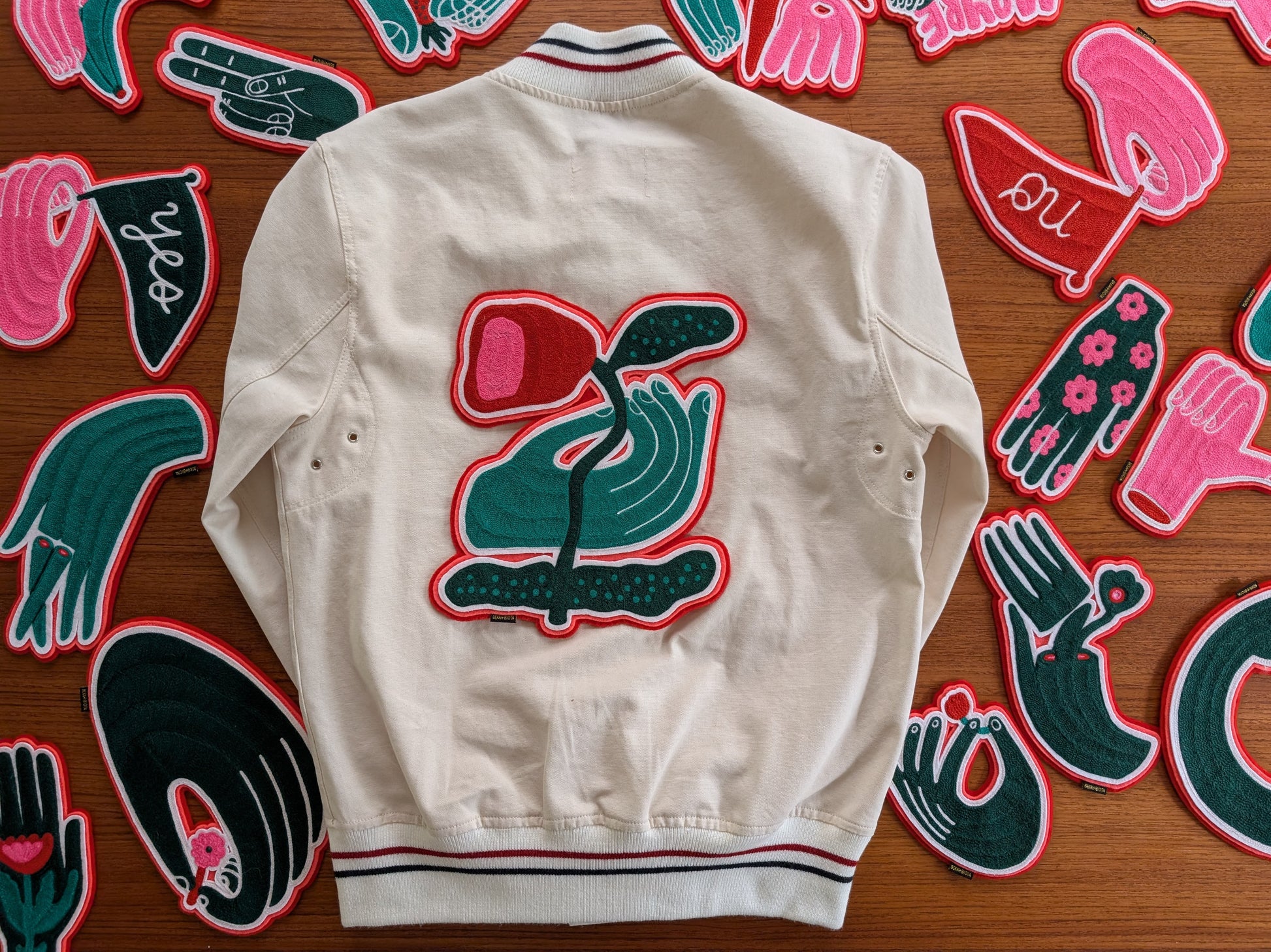 A Biota Goods n' Bekah Worley collaboration! This is a chainstitch embroidered, 100% wool patch, inspired by Bekah's artwork and crafted by Biota Goods.